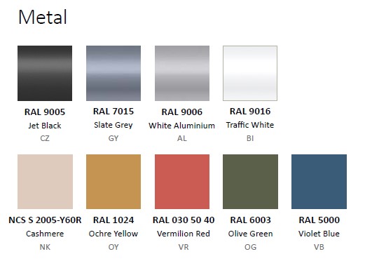 - Цвят на металната основа: черен, сив, бял алуминий или бял.